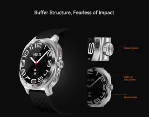 - شاشة لمس كاملة مع واجهات ساعة متعددة وقابلة للتخصيص.