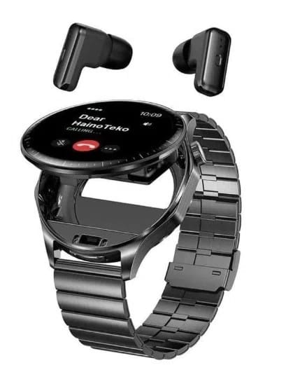تأتي الساعة بتصميم حديث مريح يمكن تغييره حسب ذوقك، بينما السماعات صغيرة وخفيفة، مما يجعلها مناسبة للإستخدام اليومي والسفر.