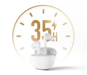 • بطارية تدوم حتى 35–40 ساعة مع العلبة.