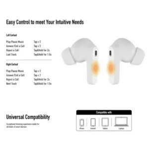 • دعم التحكم باللمس (Touch Control) لتشغيل/إيقاف الموسيقى، الرد على المكالمات، وتشغيل المساعد الصوتي.