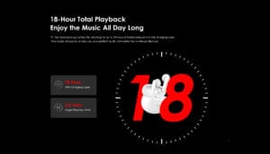 - بطارية إجمالية تصل حتى 18 ساعة مع العلبة.