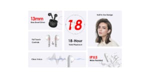 - التحكم باللمس (Touch Control)، للتحكم في الموسيقى والمكالمات وتشغيل المساعد الصوتي بسهولة.