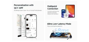 • دعم التطبيق: يمكن تخصيص إعدادات الصوت (Equalizer) وتغيير وظائف اللمس من خلال تطبيق QCY الرسمي على الهواتف الذكية.